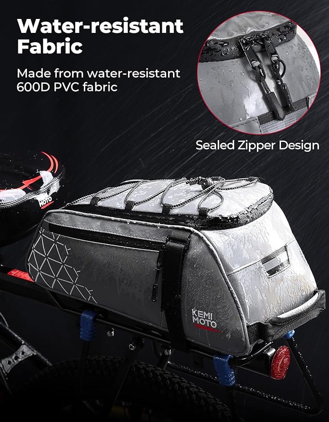 KEMIMOTO Rear Bike Rack Bag, 8L Full Reflective PVC Water Resistant Bicycle Trunk for Road and Mountain Bikes, Ebike Rack Bag with Side Pockets for Cycling Travel Commute