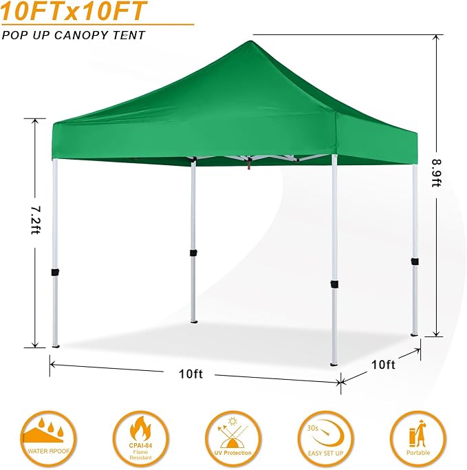 10x10 Pop Up Canopy Tent for Outdoor Commercial Instant Sun Shelter,Kelly Green