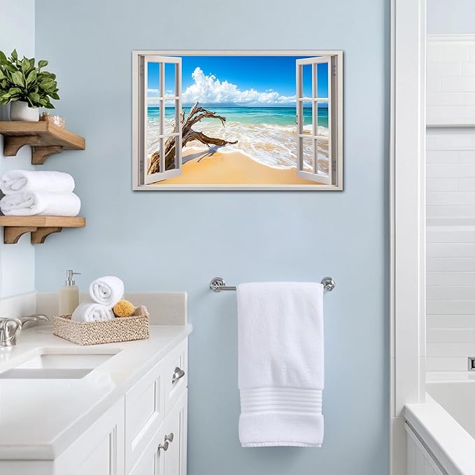 - 🏡Beach Pictures Prints Decor Space - Our window frame coastal wall art paintings will beautify your interior space and create an immersive 3D effect. Decorate your living space with fun, eye-catching, original window beach canvas wall art that makes a statement and tells a story, decorate your home with a magnificent masterpiece.