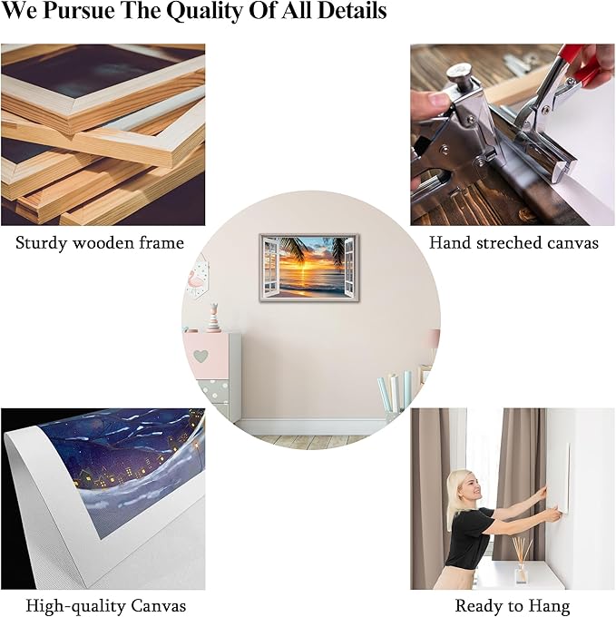 - 🎁Great Gift of Choice - Canvas wall decorations will never go out of style as holiday gifts. Our window frame coastal beach wall art paintings will beautify your interior space and create an immersive 3D effect. They are mainly used to decorate bedrooms, bathrooms, living rooms, kitchens, offices and restaurants, etc. They make ideal Valentine's Day, Halloween, Christmas and New Year's gifts for friends and family.