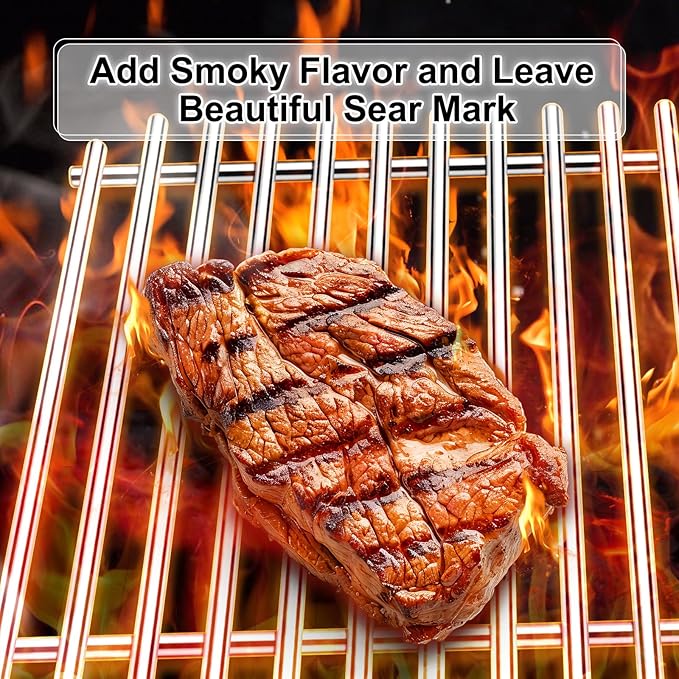 - Grill Grates Design: 9MM thickness, rapid preheating and even heating, round bars leave beautiful sear mark on food, to create delicious barbecue flavor in the outdoor
