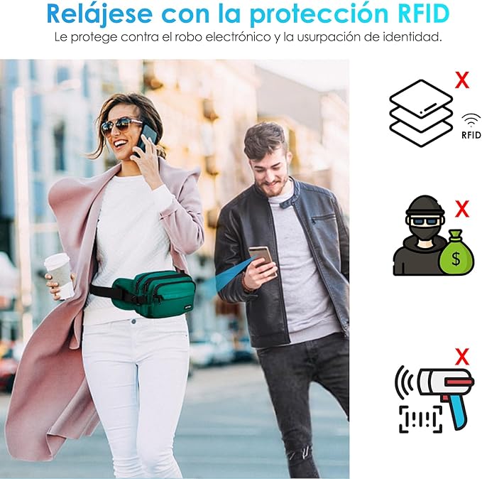 - 【RFID BLOCKING ANTI-THEFT TECHNOLOGY】 This fanny pack equips advanced RFID blocking material inside, which is designed to block 13.56 MHz or higher RFID signals, protecting you from unauthorized scans and keeping you from the financial fraud or any dangerous situation caused by personal information leakage and enjoy a safer journey.