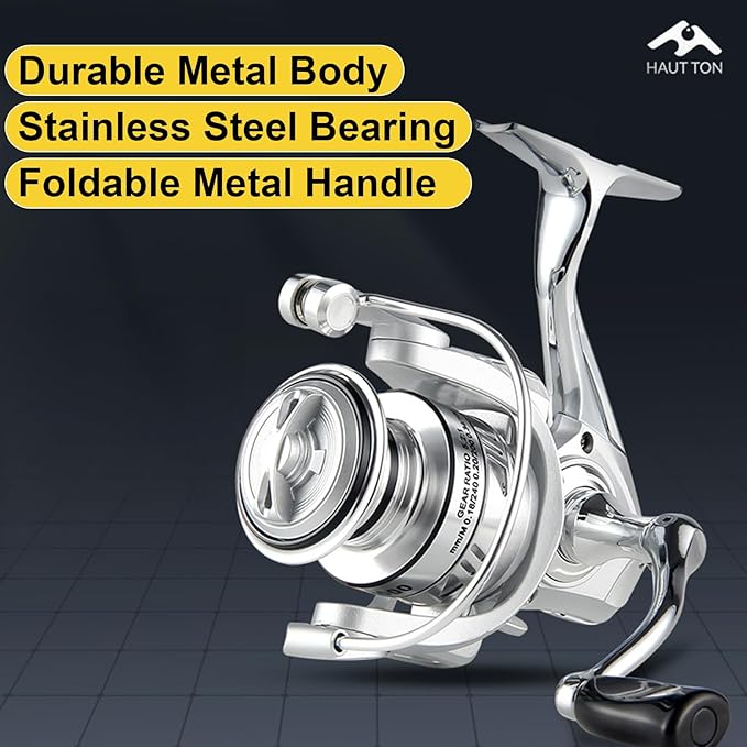 HAUT TON Spinning Reel 8000/9000/10000/12000/14000,6+1BB Metal Surf Fishing Reels,4.8:1 Gear Ratio 55lbs Drag Heavy Long Casting Inshore Saltwater Monster Fish
