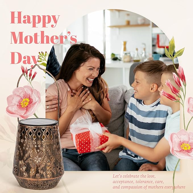 - Garden Decoration Design: Solar lantern features a sophisticated vintage design with an antique bronze metal finish.The light shines through the cut-out hummingbird pattern, casting a charming light pattern that creates a warm and inviting ambiance in your garden, yard, patio or balcony.