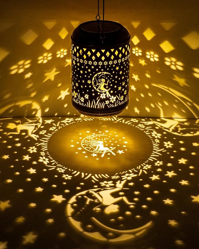 - 【Elegant Garden Decor】Solar lantern features a stunning antique bronze finish.The intricate fairy cut-out design projects beautiful light patterns, creating a magical and enchanting ambiance. Perfect for garden,patios, yard,lawns, backyards, porch