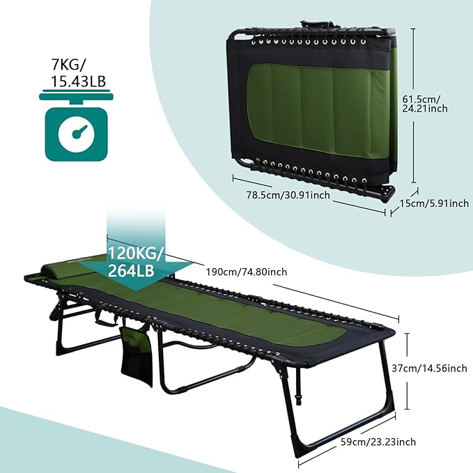 - Double cotton design: The unique double-layer cotton design is more comfortable and relaxed, providing the perfect balance between firmness and softness,supporting up to 264 pounds.Outdoor Patio Lounge Chair features a reinforced heavy-duty steel tube frame and is crafted with 600D*600D Oxford fabric, ensuring stability and durability.With unfolded dimensions of 74.80*23.23*14.56 inches, it is suitable for individuals up to 6.2 feet tall.