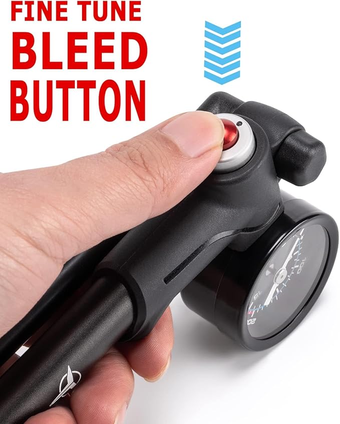 Shock Pump for Mountain, Road Bikes and Motorcycle - 300 Psi High Pressure for Front Fork and Rear Suspension Air Shocks Pump with Gauge -Portable Mini Pump with Air Bleed Button