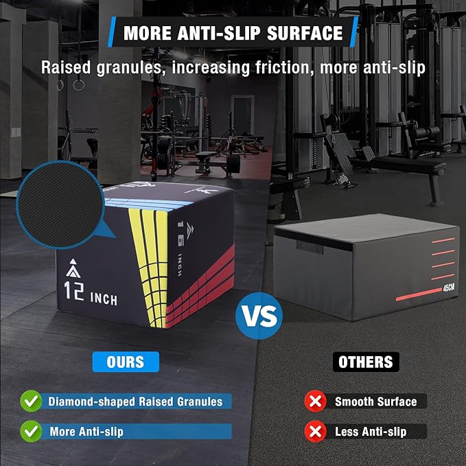 - Versatile: This multicolor foam plyometric box serves as an exercise platform for step-ups, box squats, box jumps, and plyometric workouts at home. it enhances your home gym setup with a stylish and functional design.