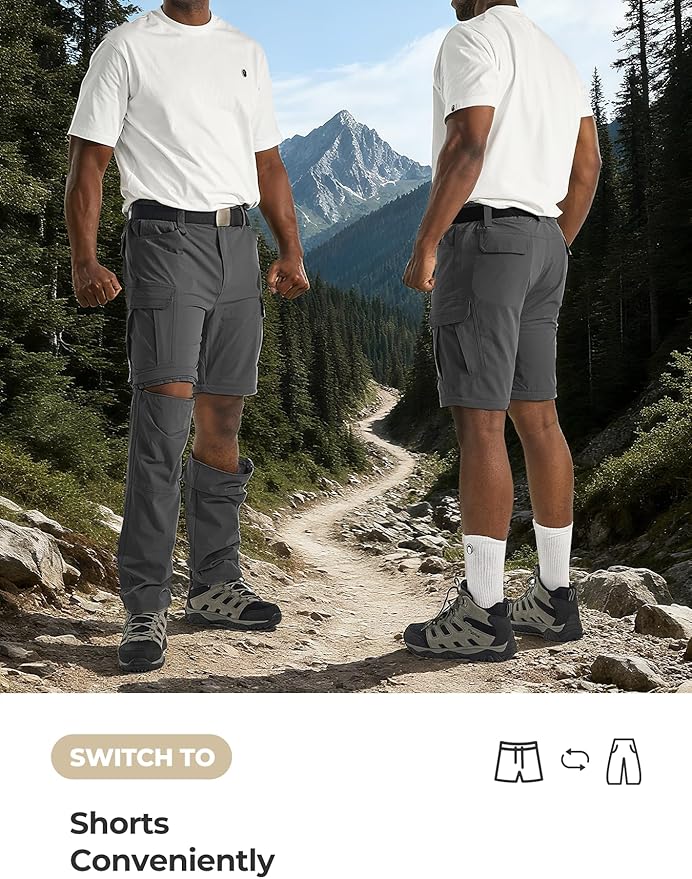 Men's Convertible Hiking Pants Waterproof Quick Dry Zip-Off Lightweight Tactical Multi-Pocket Outdoor Fishing Safari Trousers