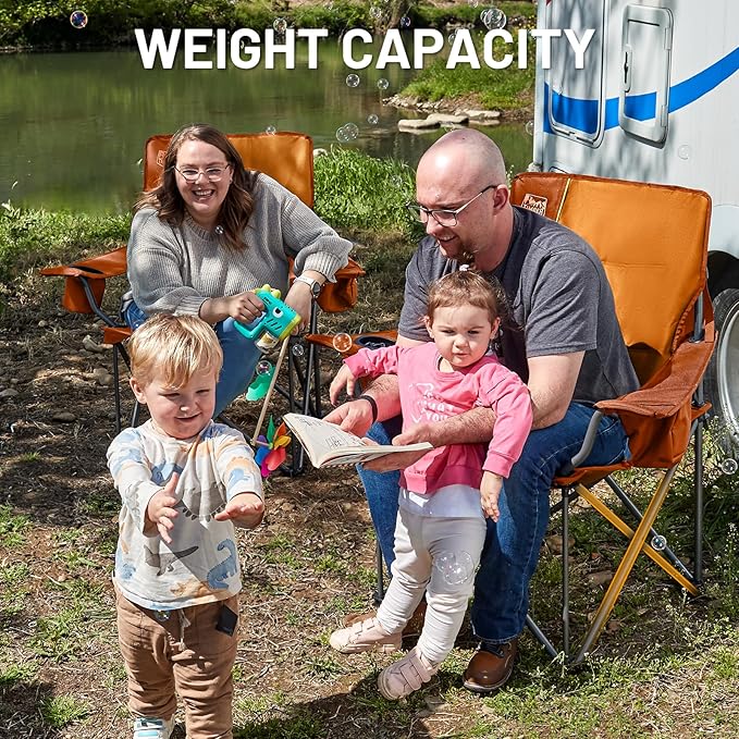 TIMBER RIDGE Oversized Folding Camping Chair for Adults, Support 550 LBS Heavy Duty with Cup Holder Side Pocket for Camp, Lawn, Picnic, Oange, 2 Pack