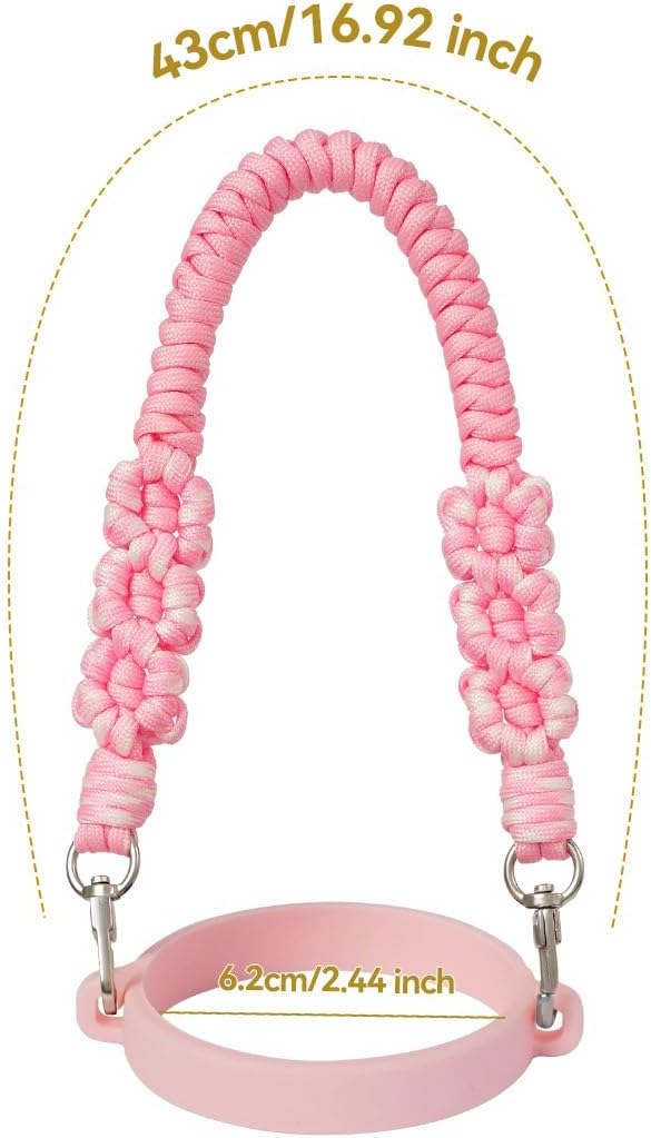- The braided water bottle handle strap is soft and comfortable, sturdy and durable and not tight on the wrist and hand. Multi-functional rope can not only be linked to the water bottle carrier ,also can be used as wrist lanyard to keep your keys, ID badge, cell phone or other essentials organized and secured