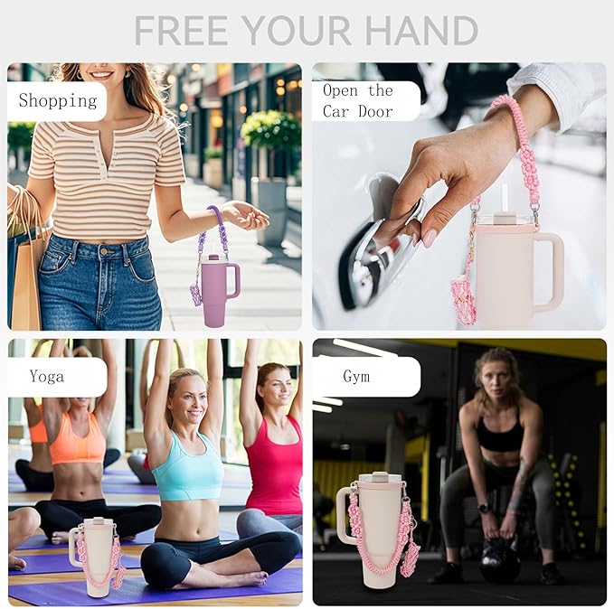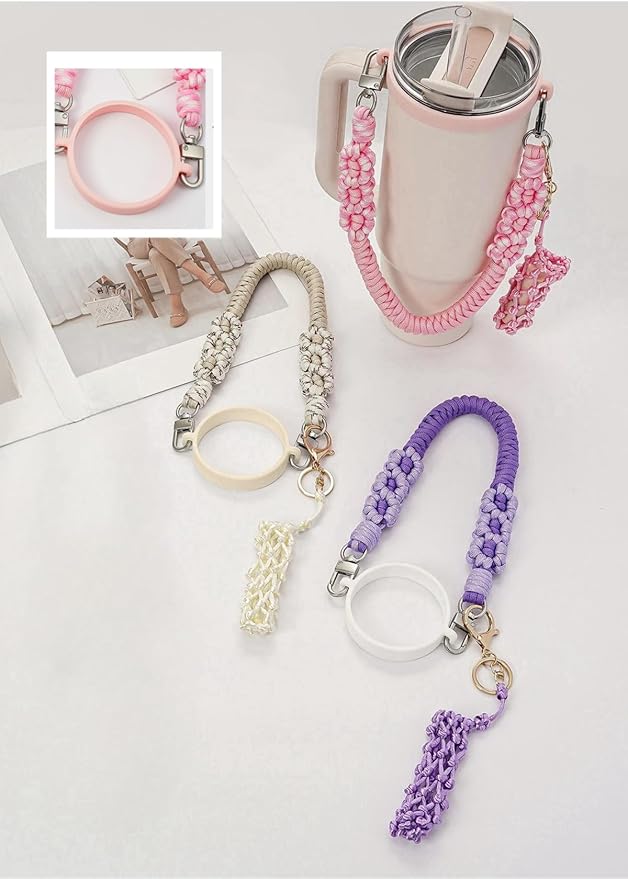 - This water bottle handle carrier come with personalized and fashionable woven handle strap and elastic silicone ring who perfectly fits your Stanley cup, let you to easily carry your mug around.And the lipstick holder means you no longer have to struggle to find keys or lipstick, simplifying your out-goings.
