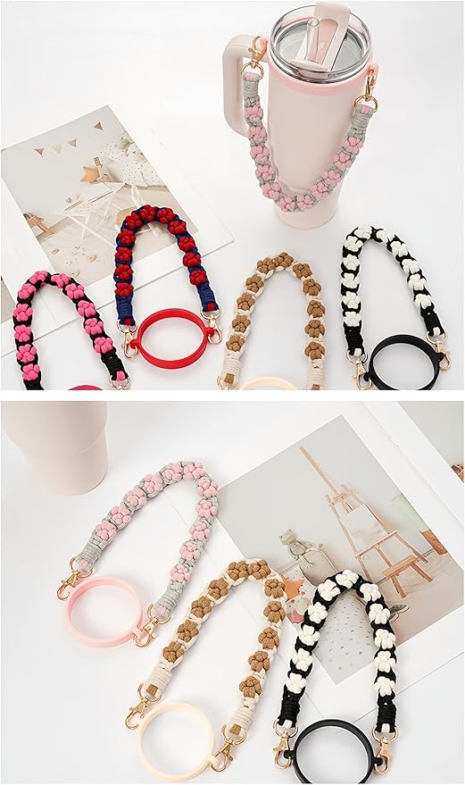 - This water bottle handle carrier come with personalized and fashionable woven handle strap and elastic silicone ring who perfectly fits your Stanley cup, let you to easily carry your mug around.And the lipstick holder means you no longer have to struggle to find keys or lipstick, simplifying your out-goings.