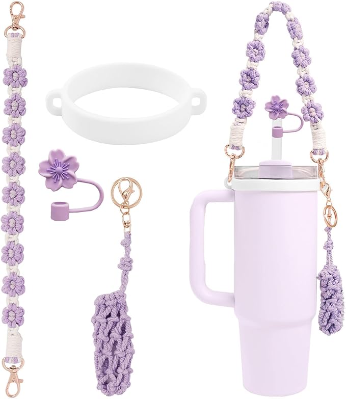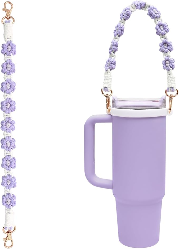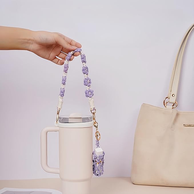 - This water bottle handle carrier come with personalized and fashionable woven handle strap and elastic silicone ring who perfectly fits your Stanley cup, let you to easily carry your mug around.And the lipstick holder means you no longer have to struggle to find keys or lipstick, simplifying your out-goings.