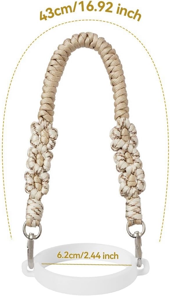- The braided water bottle handle strap is soft and comfortable, sturdy and durable and not tight on the wrist and hand. Multi-functional rope can not only be linked to the water bottle carrier ,also can be used as wrist lanyard to keep your keys, ID badge, cell phone or other essentials organized and secured