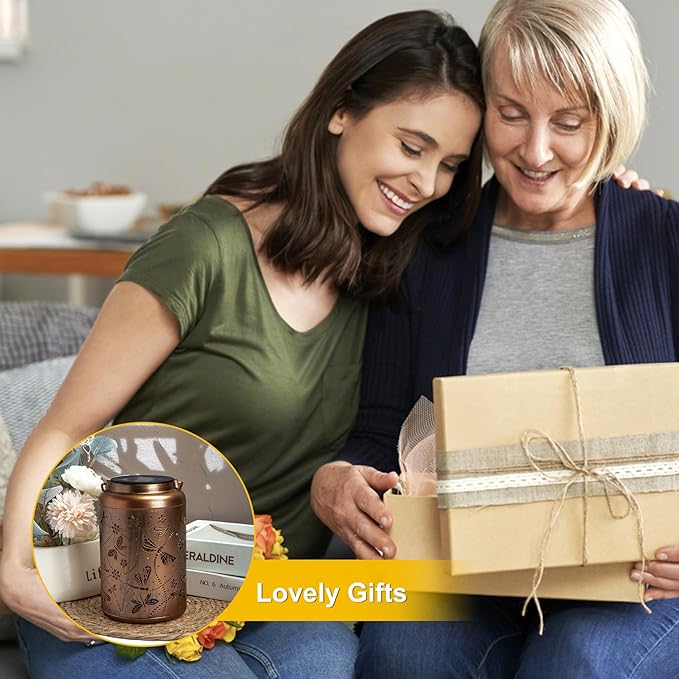 - Attractive Garden Gifts: Retro gold and copper appearance adds artistic atmosphere to outdoor space during the day; solar lanterns outdoor waterproof project various sizes of dragonfly patterns at night, bringing life to your garden