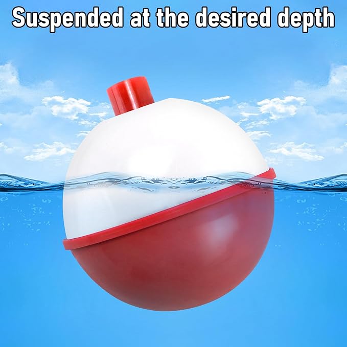 - Crafted from high-quality ABS, these fishing buoys are durable, buoyant, and damage-resistant. The Snap On design suspends bait at the right depth, boosting fishing efficiency. A convenient clip securely holds the line with a light press.An excellent choice for all round freshwater fishing for bass, trout and crappie or even fly fishing.Quantity:20 Pack;3 Colors: Red/White, Green/Chartreuse, Red/Chartreuse; Size 1.0inch, 1.5inch, 2.0inch.