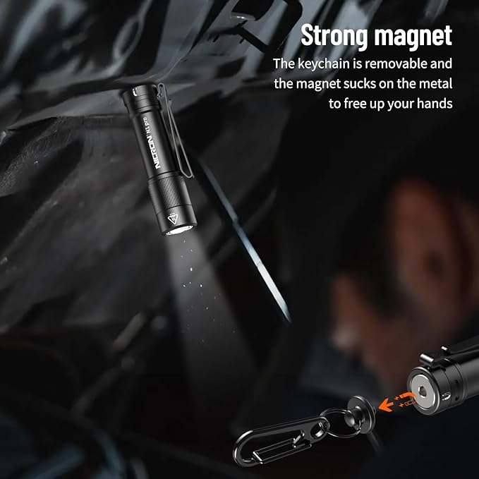 - Sturdy Flashlight:The EDC flashlight adopted unique craftsmanship, made of hard anodizing aircraft grade aluminum alloy, its IP68 water resistance and 1 meters impact resistance