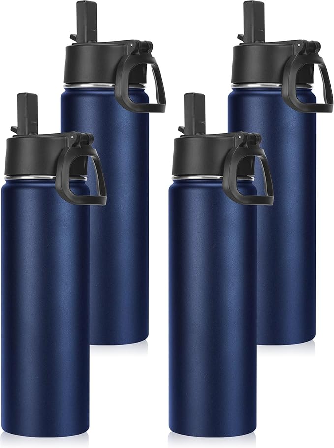 Neihepal 22 oz Insulated Water Bottles Bulk, Double Walled Vacuum Stainless Steel Water Bottle Multipack with Leak Proof Straw Lid for Men, Adults, Kids, Gym, Sports (Navy,4 Pack)