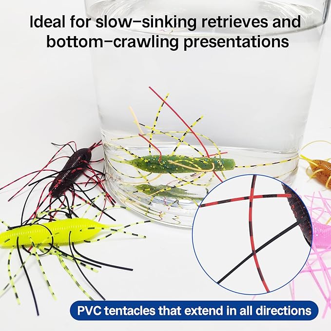 - Realistic Caterpillar Stick Bait Design: Mimics the natural movement of a caterpillar falling onto the water surface, with PVC tentacles that extend in all directions. Its lifelike action is irresistible to fish, making it highly effective both above and below water.