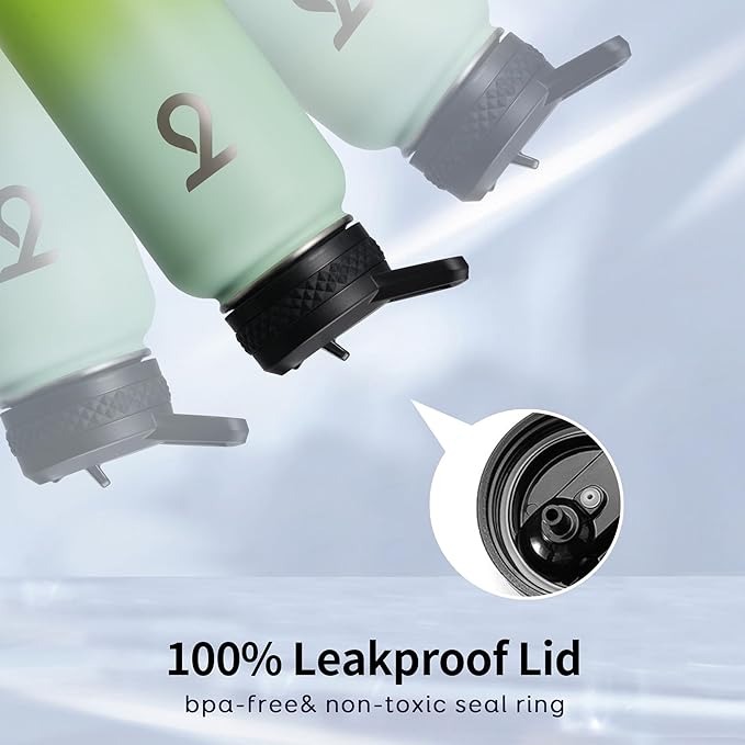 - Leakproof Triple Lids: Each lid comes with a rubber seal ring to ensure 100% leakproof. Sip through the flip-up straw lid, drink like a fish through the spout lid, or refill ice cubes through the wide mouth, you are in good hands with Trebo 32 oz water bottle.