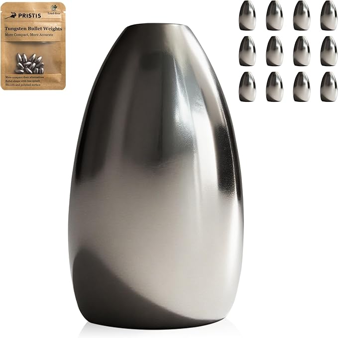 Pristis 12 pcs Tungsten Fishing Weights, Compact Bullet Sinkers Kit for Fishing line, Drop Shot Texas Carolina Rig Hook Weight for Bass Walleye Perch Trout Crappie Bait