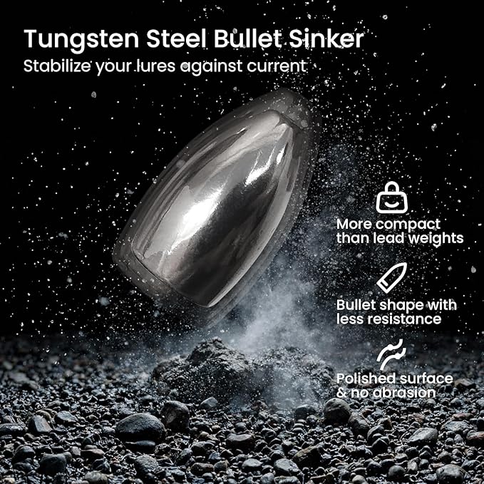 - Tungsten Steel Sinker: Pristis heavy duty fishing weights made of high content of tungsten are more compact than lead weights, so as to realize faster sinking with less resistance and splash. The smaller size also reduces the risk of getting stuck in the cracks