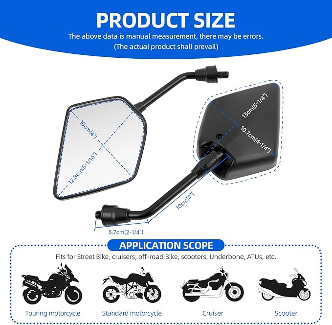 - Heavy Duty Construction: DREAMIZER motorcycle mirrors are constructed from high-quality, hard materials that ensure maximum durability and resistance to impacts, making them ideal for the rigors of the road.