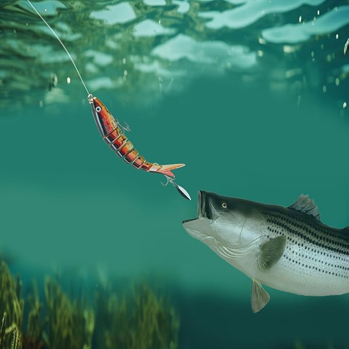 - MULIT SEGMENTS LIFELIKE LURES: 8 segments multi-jointed body, multi-layer reflective surface and 3D realistic eyes make it attracting more catches and provoking predator fish to strike