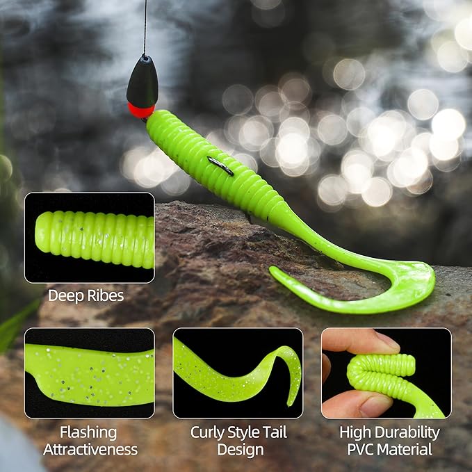 - Perfect for All Types of Fishing: Whether you're casting from the shore or trolling in open water, Probite Curly Style Tail Worms are your go-to Fishing Lures for both saltwater and freshwater fishing. The soft, flexible design mimics the real movements of fish, making them irresistible to bass, trout, and more.