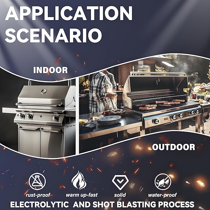 - [Premium Stainless Steel with Advanced Craftsmanship]:We offer two versions of the Blaze Rod Grill Grate: the Upgraded Shot Blasting + High-Quality Stainless Steel version and the 304 Stainless Steel version. The Upgraded Version (Shot Blasting + High-Quality Stainless Steel) is treated with shot blasting, enhancing the surface hardness and wear resistance, offering superior durability and corrosion resistance. The 304 Stainless Steel Version uses high-quality 304 material, providing excellent high-temperature resistance and rust prevention, ensuring long-term use and a perfect grilling experience every time