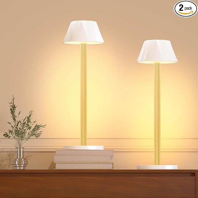 - 【Easy Touch Control & Adjustable Lighting】This touch lamp features intuitive top-touch controls—tap to power on/off and cycle through 3000K, 4000K, and 5300K color temperatures. As a versatile battery lamp, it offers stepless dimming with a long press, allowing you to fine-tune brightness from 100% down to 10% to suit any mood or task.