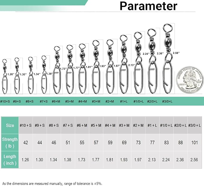 - Corrosion Resistance and Reliable Connection : The corrosion resistant properties of our saltwater fishing swivels ensure that they won't let you down,fishing snap stainless providing smooth and reliable performance every time you cast your line. With a corrosion resistant design,fishing swivel rolling is built to last,maintaining their strength and functionality even after repeated exposure to saltwater. Fishing snap swivel built to handle high strength and strong pulls.