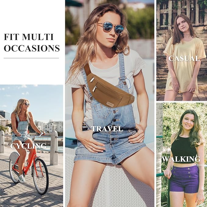 - Changeable Style Fanny Pack for Women,Many Ways to Wear — Since the comfortable long strap is widely adjustable for most waist size(20” - 50”).There are many ways to wear this fanny pack - (1)As a Waist Belt Bag:Wear it in front of your waist (2)As a Hip Pack:Back on your hip (3)As a Shoulder Fanny Pack or a Sling Fanny Pack:Slant across your chest or over You shoulder.Perfect for various occasions.