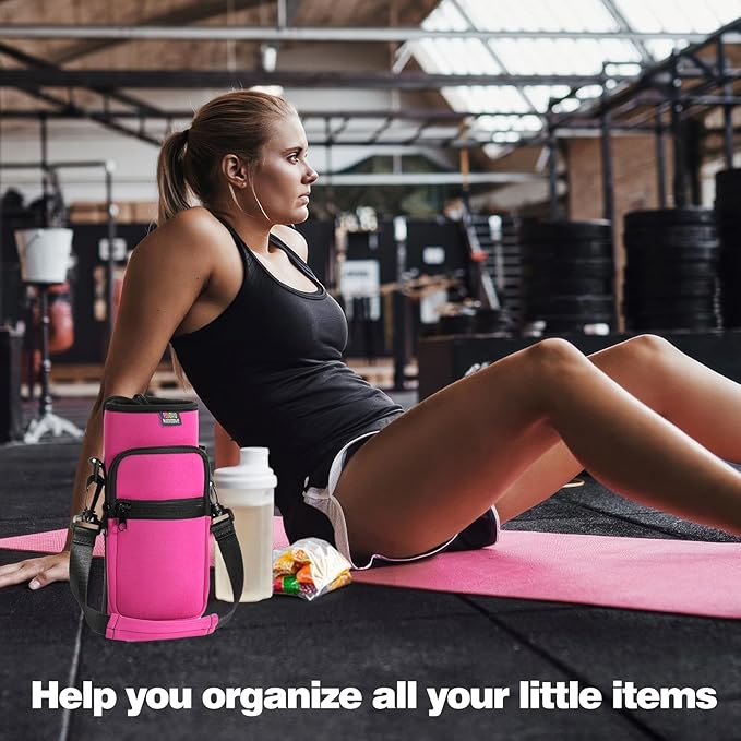- TWO WAYS TO CARRY: Equipped with padded handle strap and adjustable shoulder strap, it's comfortable for you to carry. This sports water bottle carrier bag making your hands free from holding the bottle when outdoors.