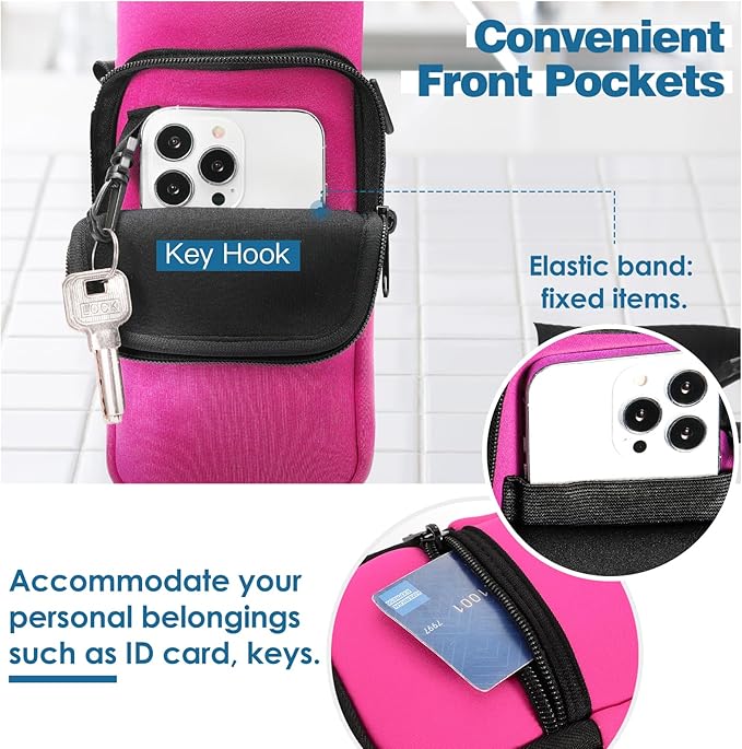 - 2 POCKETS: The small zipper pocket is for cash and card, the large zipper pocket is for smartphone, keys, and other essentials. When you go out, you just need to bring this water bottle bag, no need to carry the bag to hold these small items.