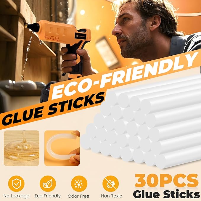 - Professional Performance: Industrial-grade performance meets the needs of professional users while maintaining ease of use, suitable for large projects: 30 Premium Glue Sticks Included, large-capacity glue sticks with high-power design are competent for long-term work needs, perfect for hobbies, crafting, home repairs, school projects, DIY enthusiasts, commercial, and industrial use
