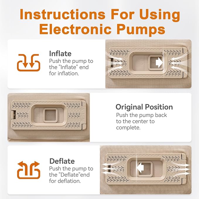- 【Quickly Inflation & Delflation】This sleeping pad features a built-in air pump design for quick inflation and deflation. Simply slide the button to quickly inflate within 1-2 minutes, completely freeing your hands. Deflation can also be completed within three minutes, providing you with an unparalleled relaxation experience. You can adjust the softness of the camping mat by controlling the inflation time. NOTE:The inflation pump may become slightly hot after use, please be careful when handling it