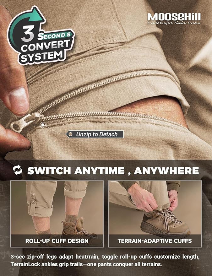 - Instant Convertible Convenience: Switch from pants to shorts in seconds! L/R zipper labels eliminate guesswork, while snag-free zippers ensure smooth transitions—ideal for sudden weather changes or trailside breaks.