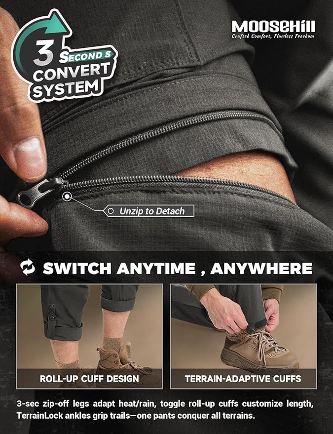 - Instant Convertible Convenience: Switch from pants to shorts in seconds! L/R zipper labels eliminate guesswork, while snag-free zippers ensure smooth transitions—ideal for sudden weather changes or trailside breaks.