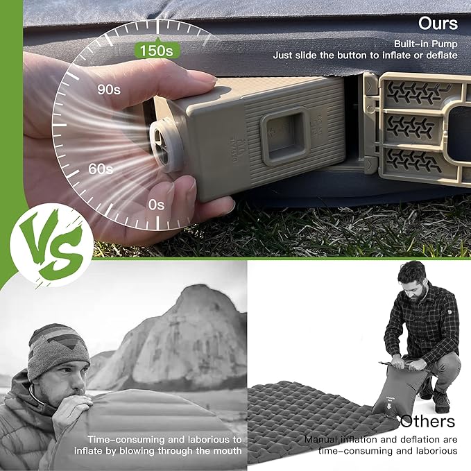 - 【Deflate & Store in a Snap – Say Goodbye to Struggle!】: Tired of battling with your sleeping pad when it’s time to pack up? Our one-slide deflation system makes it easy to release the air, and with just a few simple rolls, you can collapse the pad into a compact bundle. No more fighting with your mattress—effortless storage means you’re back on the road or trails in no time!