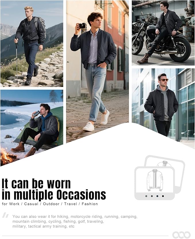 - WARM VERSATILITY---33,000ft men's insulated windbreaker coat is especially suitable for daily casual wear, work business and outdoor sports such as hiking, motorcycling, running, camping, climbing, cycling, fishing, golf, travel, military, tactical army training, etc.