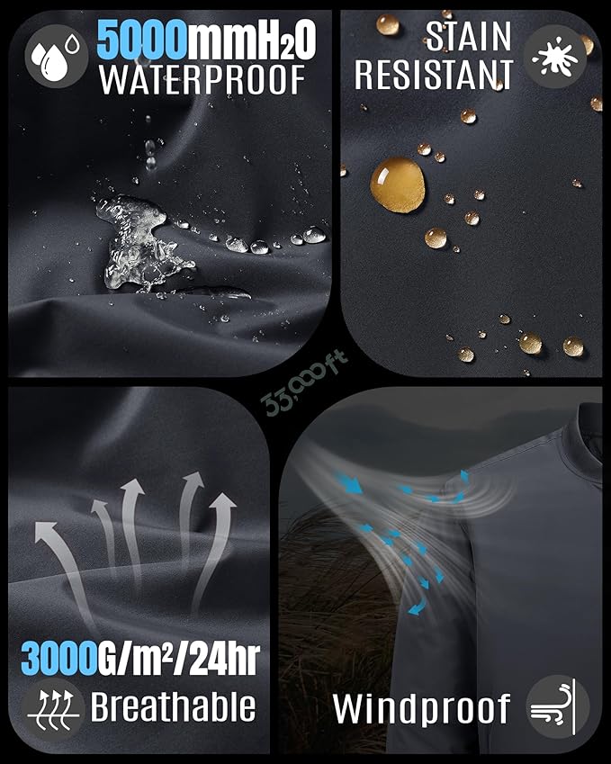 - WATERPROOF & WINDPROOF---This 33,000ft men's lightweight bomber jacket is crafted with windproof and waterproof tech fabric( 5000mm H2O waterproof, 3000G/㎡/24hr breathable) that keeps you dry and comfortable in rainy, snowy and windy conditions. It's lightweight, fully padded and quilted inside to retain heat in extreme cold weather.