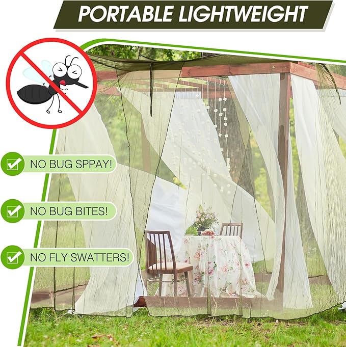 - Size Details: included 2 Pcs Mosquito Netting for Patio with 2 overlapping openings for ease of entrance; Our mosquito net size is L87 x W87 x H71 Inch, whether you are setting up mosquito mesh at home, camping in the woods, or traveling, our mosquito net can meet your basic needs