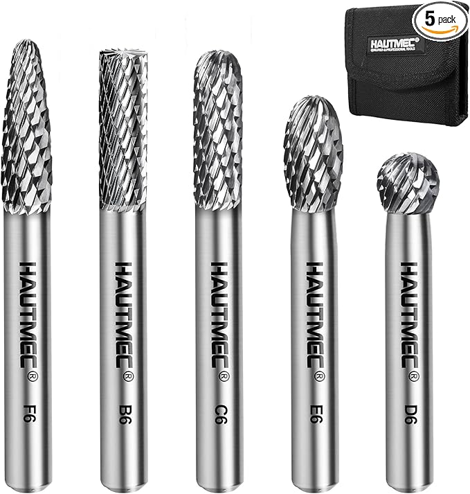 HAUTMEC Tungsten Carbide Rotary Burr Bit Set– 1/4" Shank with Portable Storage Bag, Double Cut Tungsten Rotary File for Die Grinder, Suit for Metal Carving, Grinding, Engraving & Deburring - HT0453