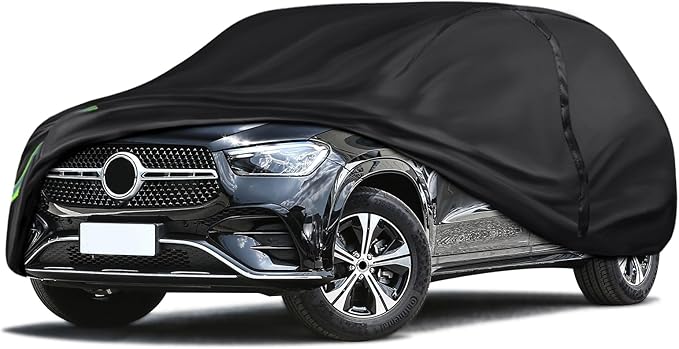 - 🏆【 Universal Fit & Hassle-Free Installation】- Fits sedans, SUVs, MPV, and Pickup truck effortlessly. The lightweight, user-friendly design allows quick setup and removal—ideal for daily parking, road trips, or long-term outdoor storage, Features a sleek black exterior that complements any vehicle, paired with a scratch-resistant cotton lining to maintain your car’s shine, Please confirm that the car body is dry before putting the car cover on the car.