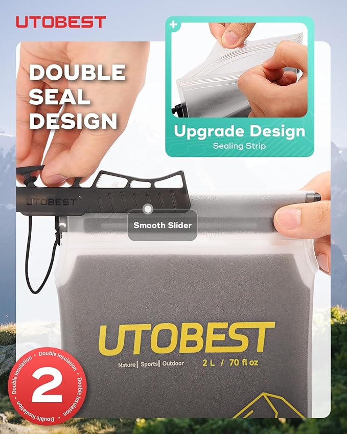 - Upgraded Dual-Seal Closure: Leak-Proof double-layer sealing system prevents leaks and heat loss. The wide slide top of 2 liter hydration bladder allows easy filling and cleaning while maintaining a secure, temperature-locking seal