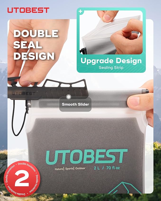 - Upgraded Dual-Seal Closure: Leak-Proof double-layer sealing system prevents leaks and heat loss. The wide slide top of 2 liter hydration bladder allows easy filling and cleaning while maintaining a secure, temperature-locking seal