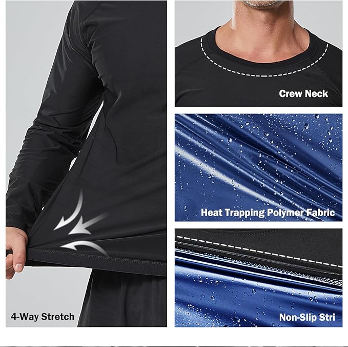 Sauna Suit for Men Long Sleeve Heat Trapping Sweat Suit Weight Loss Body Shaper Hot Workout Gym Compression Shirts
