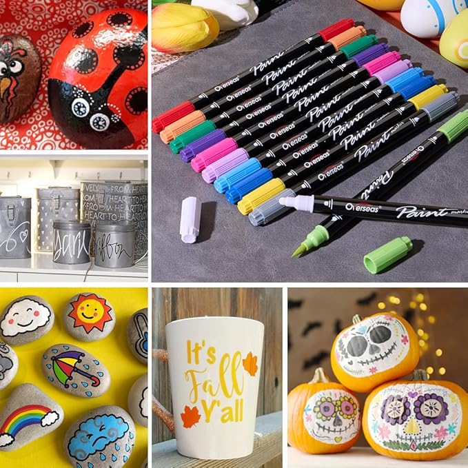 - Dual Tip Acrylic Markers: Each paint pen come with a brush tip and a round dot tip. With the unique and convenient dual tip design, these paint markers can meet various needs. Suitable for both beginners and professionals to use at home, office, school or outdoors